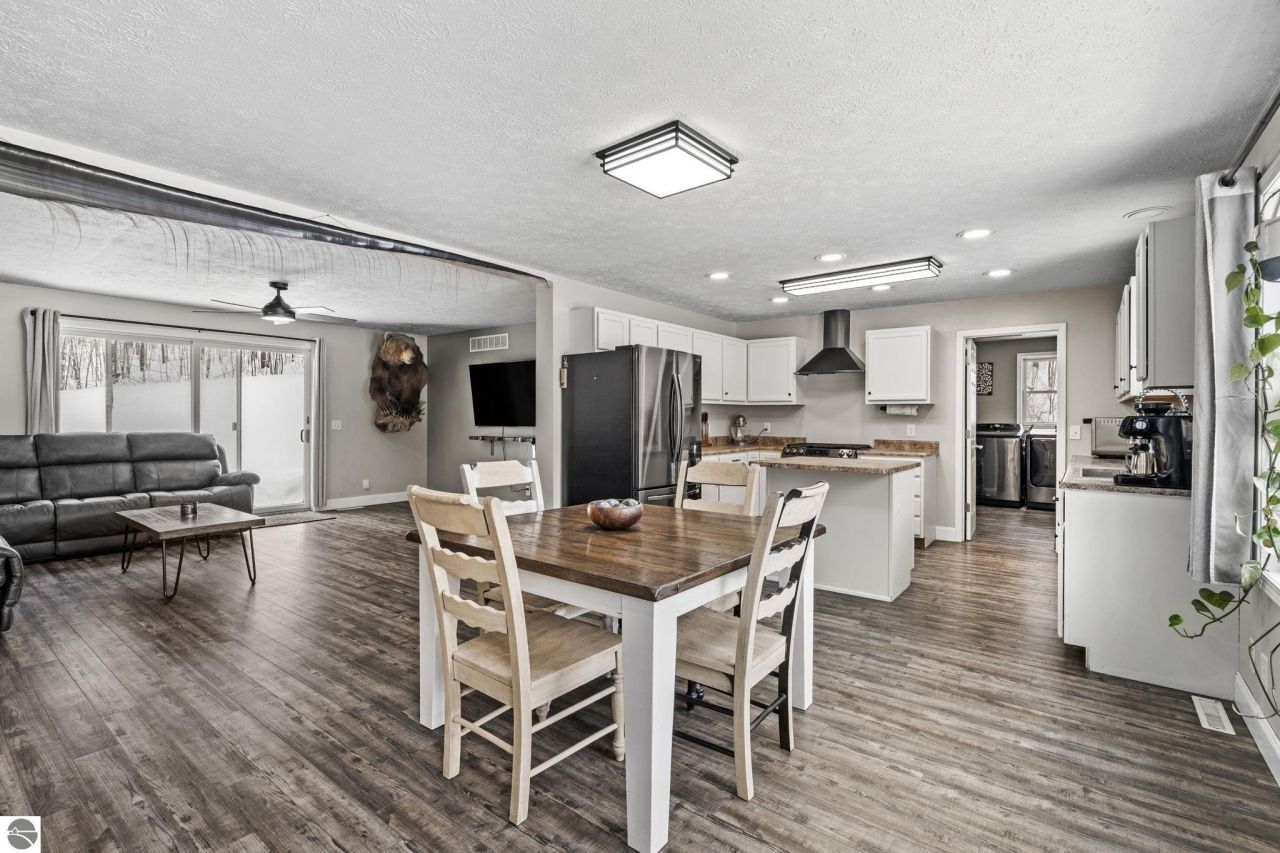 Set on 10 peaceful acres in a private wooded setting, this beautifully maintained 3-bedroom, 2-bath home offers the perfect blend of comfort, space, and Northern Michigan recreation. The property features a horse pasture with stall and hay storage, making it ideal for equestrian enthusiasts or those seeking room to roam. Evenings are best enjoyed around the thoughtfully placed fire pit, perfectly positioned for incredible star gazing. Inside, the home is filled with natural light and enhanced by soaring ceilings in the living room that create an open, airy feel. The updated kitchen offers modern functionality and style, complemented by updated appliances and thoughtful finishes. The newly remodeled primary bathroom adds a touch of luxury, while numerous updates throughout the home reflect meticulous care and pride of ownership. Improvements include updated flooring, interior doors, trim work, remodeled bath, gutters, sliding door, retaining wall to the walk-out basement, a welcoming new front deck, and a water softener. The full unfinished walk-out basement offers excellent storage and future living space potential. The reinforced deck with hot tub hookups are ready for relaxing evenings. Stay connected with high-speed fiber internet while enjoying the serenity of country living. Located just 30 minutes from Traverse City and close to Crystal Mountain for year-round golf and skiing, this property is also near Benzie County snowmobile trails and abundant hiking opportunities. A rare opportunity to enjoy privacy, recreation, and a beautifully updated home all in one exceptional setting.
